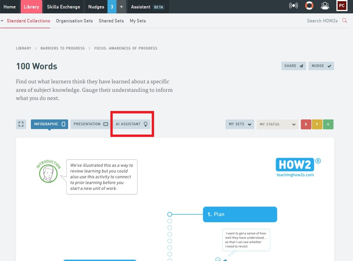 One of the most useful features of HOW2 is its AI Assistant. It helps you move quickly from reading about a strategy to actually using it in your teaching.